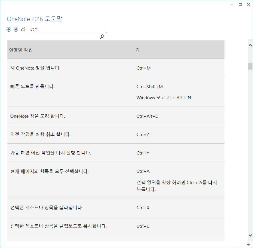 원노트 단축키는 원노트 도움말에 아주 잘 정리되어 있습니다. (도움말의 단축키는 제일 마지막 하단에 정리해 놓겠습니다.)