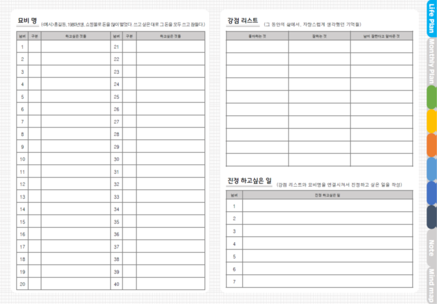제가 만든 만년형 다이어리 양식의 "Life Plan" 화면 입니다.